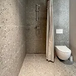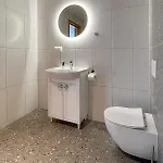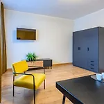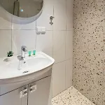 Dit appartement biedt een zitruimte die zijn ingericht met een bureau, samen met moderne voorzieningen zoals een flatscreen TV met satellietzenders. De accommodatie heeft ook parket vloerbedekking. Dit appartement is uitgerust met een badkamer met een droger, toiletartikelen voor gasten en handdoeken. Daarnaast vindt u er een apart toilet en een douche.